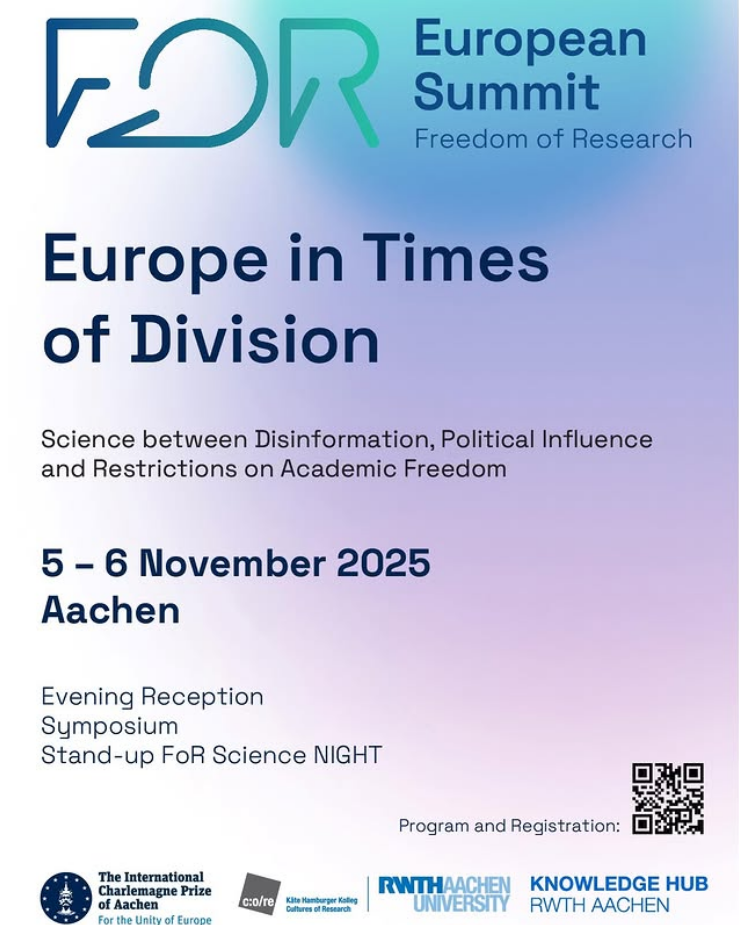 Organisiert von der Stiftung Internationaler Karlspreis zu Aachen, dem Knowledge Hub der RWTH Aachen University und dem Käte Hamburger Kolleg: Kulturen der Forschung (c:o/re), bietet der Summit zwei Tage voller Impulse, Debatten und Begegnungen. 🤝